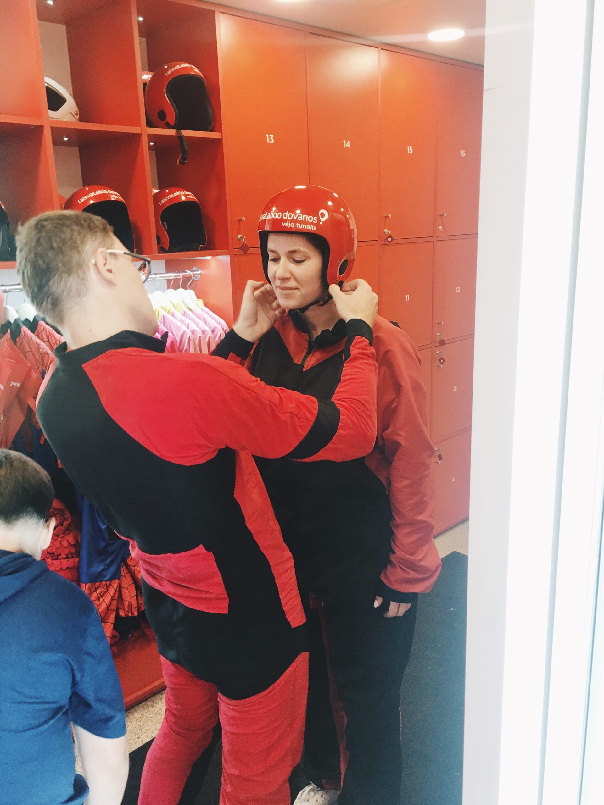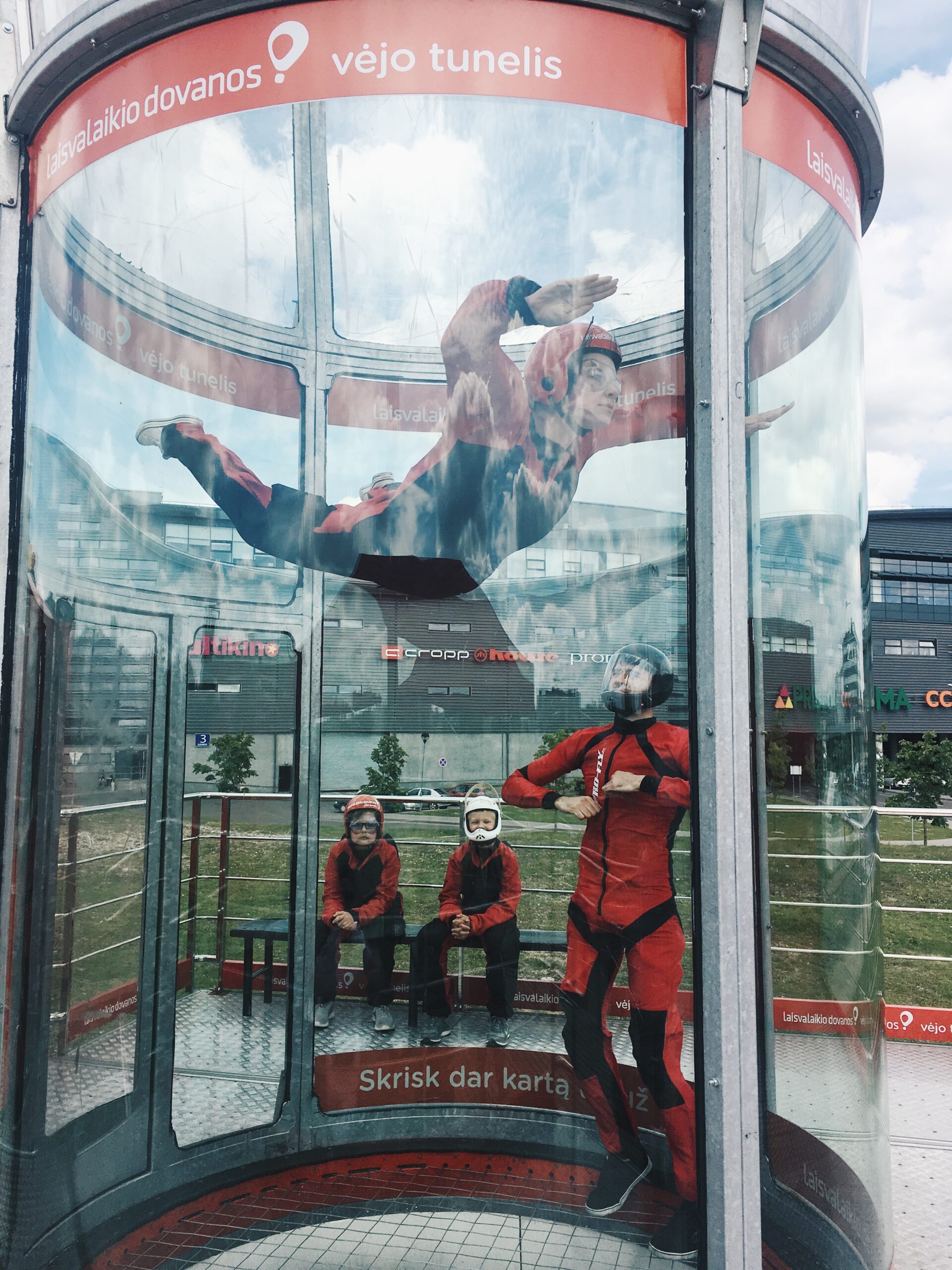 Prisipažinsiu, prieš išbandydama šią pramogą šiek tiek baiminausi, nors ir nežinojau tiksliai ko. Atėjus į Vėjo tunelio namelį, mane pasitiko du itin paslaugūs ir malonūs instruktoriai. Jie padėjo išsirinkti kostiumą, akinius bei šalmą bei davė vertingų patarimų. Vėliau sekė galbūt 20 minučių pasiruošimas, kurį sudarė informacinis filmukas, sutartinių ženklų mokymasis bei tobulos skraidymo pozicijos treniruotė, po kurios su dviem mažaisiais kolegomis jautėmės pilnai pasiruošę skrydžiui.