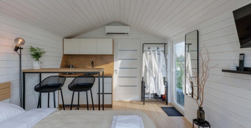 „Comfort Villas“ – tai trijų modernių namelių kompleksas, įsikūręs vaizdingo Kurėnų ežero pakrantėje! Šis kompleksas puikiai tiks tiems, kurie nori atitrūkti nuo rutinos ir komfortiškai pailsėti gamtos apsuptyje. Apsistosite jaukiame, dviejų asmenų, namelyje, kuris suteiks maksimalų komfortą ir visišką privatumą! Jame rasite dvigulę lovą su kokybišku čiužiniu, chalatus, visus dušo reikmenis, pilnai įrengtą virtuvę, kavos aparatą, indukcinę kaitlentę, grilių „Kamado“, išmanųjį televizorių ir greitą internetą. Poilsio pramogos namelyje – sūkurinė vonia su hidromasažinėmis srovėmis. Kokybė, komfortas ir privatumas – viskas viename!