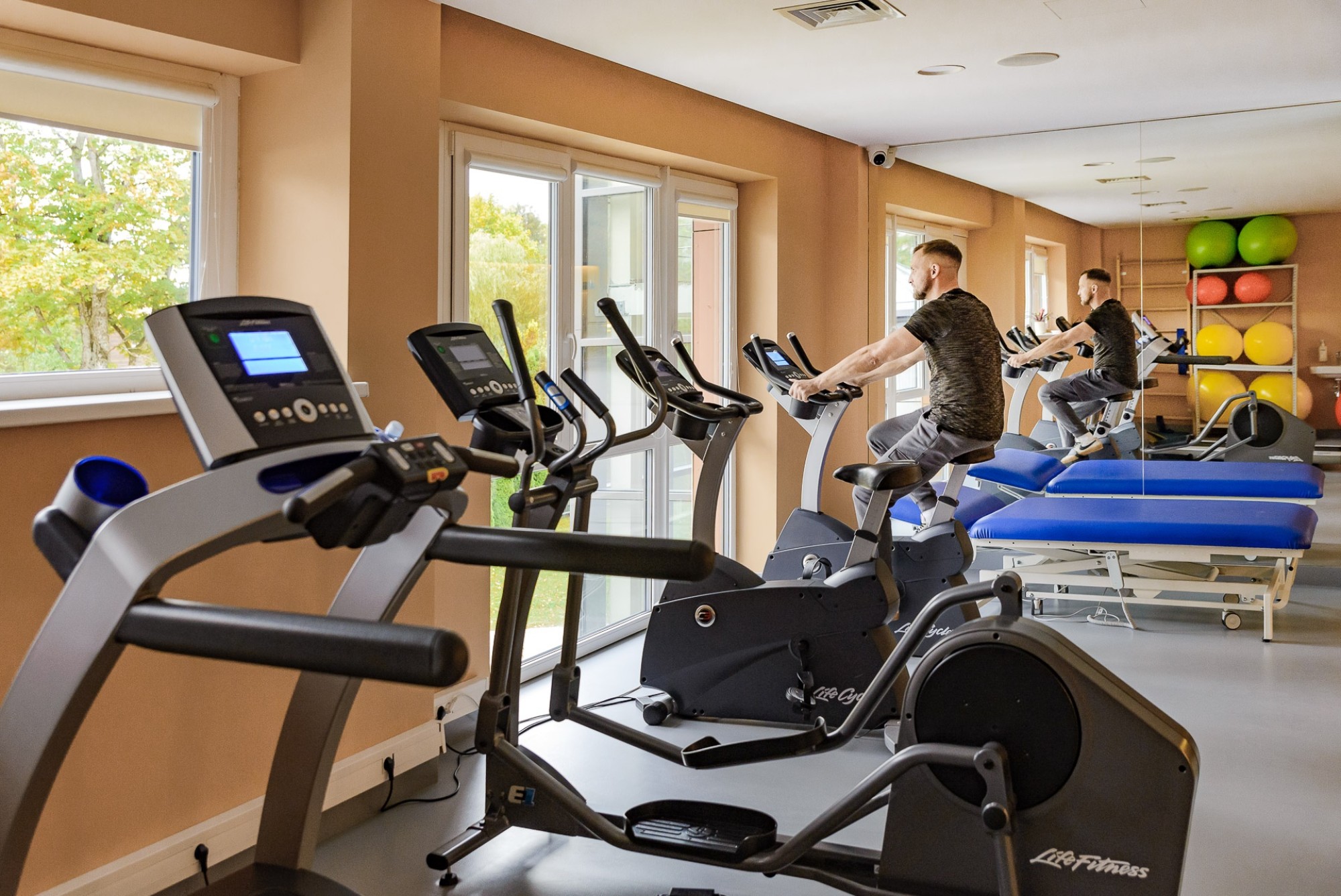 2. Kineziterapija / Fizioterpija: AQUA aerobika (30 min.) / grupinė mankšta salėje* (30 min.) / gydomoji mankšta su treniruokliais ir kitomis kineziterapijos priemonėmis* / grupinė gydomoji mankšta baseine* (30 min.) / haloterapija (druskų kambarys, 30 min.) / deguonies terapija (30 min.) / „Stima Well“ – elektroterapija, termoterapija ir masažas (20 min.);