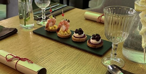 • degustacinė vakarienė dviem: starteris, užkandis, sriuba, pagrindinis patiekalas, desertas.