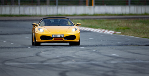 Ar kada nors galėjote pagalvoti, kad galingu sportiniu automobiliu skriesite tikroje lenktynių trasoje? „Laisvalaikio Dovanos“ gali išpildyti šią svajonę – siūlome Jums pačiam sėstis už Ferrari F430 arba Lamborghini Gallardo vairo ir savo kailiu patirti, ką gali šie legendiniai sportiniai automobiliai! Tai įspūdžiai, kurių nepatirsite daugiau niekur Lietuvoje – vienintelė šalyje specializuota lenktynių trasa ir net du aukščiausios klasės superautomobiliai, kurių vairavimas suteiks ne tik ekstremalių įspūdžių, tačiau ir ypatingą malonumą kiekvienam automobilių sporto mėgėjui. Pramogos metu su kiekvienu automobiliu apvažiuosite po du ratus lenktynių trasoje. Numalšinkite greičio troškulį!