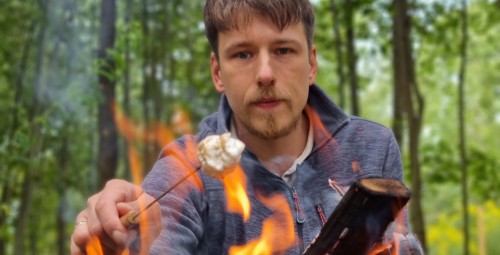 • Zefyrų kepimas ant laužo (zefyrai, šokoladas, sausainiai);