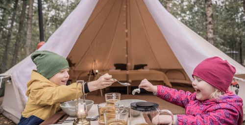 • 2 naktys jaukiai įrengtoje palapinėje (4 asm. - 2 suaugusieji, 2 vaikai);