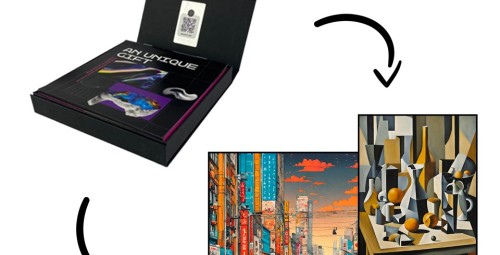 Dėžutė, leidžianti be jokių papildomų įgūdžių susikurti asmeninį ir unikalų paveikslą. Viduje esantis dirbtinio intelekto modulio raktas leis prisijungti prie 0x0.art platformos kūrybinio modulio ir iš pateikto teksto sugeneruos asmeninį paveikslą. Fizinė, itin kokybiško paveikslo, versija bus pristatyta dėžutės turėtojo adresu. Paveikslų generavimo dėžutė yra tinkama dovana tiek draugui, tiek verslo partneriui. Nepriklausomai nuo meno stiliaus ar skonio – kiekvienas galės susikurti savo unikalų paveikslą. Dėžutėje lietuvių ir anglų kalba esančios vaizdinės ir tekstinės instrukcijos padės vos keliais paspaudimais sugeneruoti paveikslą dėžutės turėtojui.