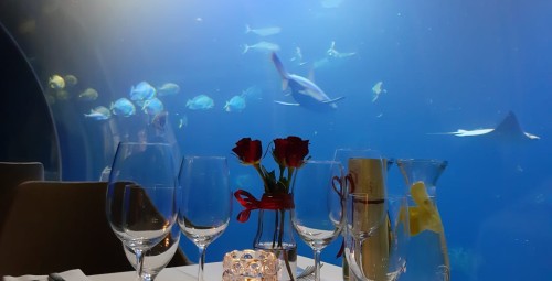 Kviečiame į vienetinę povandeninę vakarienę dviems kartu su apsilankymu zoologijos sode. Jūsų laukia išskirtinė vakarienė, kurią lydės neįprasti jūros gyvūnai. 18 metrų tunelyje, pagamintame iš akrilo, praleisite romantiškas akimirkas mėgaudamiesi puikiu maistu specialiai šiai progai paruoštu tikro virtuvės šefo. Vakarienė apsupta 3 milijonų litrų vandens ir 30 žuvų rūšių, tarp kurių labiausiai vertinami rykliai, eršketai, murenos ir ūsai. Prieš valgį vyks ekskursija po zoologijos sodą, kuriame susipažinsite su krokodilais, begemotais ir dikdikais, t.y. vienos mažiausių antilopių pasaulyje. Apžiūrėję atrakcionus, nusileisite į tunelį, kuriame vyks romantiška vakarienė. Pasiruoškite tikrai pojūčių šventei!
