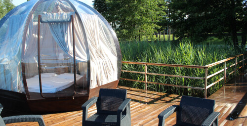 Pasimėgaukite unikaliu poilsiu nuostabios gamtos apsuptyje! „Oasis Dome“ - kupolas ant liepto ir išskirtinė vieta tiems, kurie nori mėgautis privatumu ir komfortu gamtoje. Viešnagės metu apsistosite išskirtinio dizaino kupole, ant privataus liepto. Komfortą užtikrins patogi lova, elektra ir šildymas. Dienos metu galėsite išbandyti viešbučio „Vila Ūla“ pramogas, o naktį stebėti žvaigždes ir mėgautis netrukdomu poilsiu. Pasimėgaukite trumpu atotrūkiu ir užburiančia gamta!