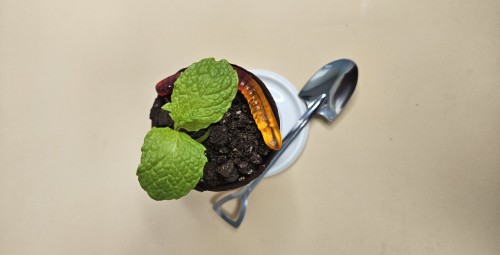 Artėjant pavasariui pristatome naująjį šokoladinį desertą – šokoladinį gėlių vazonėlį! Įsivaizduokite minkštą ir švelnų juodo šokolado musą, pripildytą iki pat kraštų, o viršuje sausainių pabarstukai. Kiekvienas kąsnis džiugins ne tik jūsų skrandį, bet ir suteiks smagų laiką, kuomet patirsite optinę apgaulę, lyg prieš save turėtumėte tikrą žemėmis pripildytą vazonėlį.