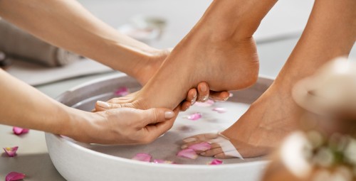 • atpalaiduojantis, taškinis pėdų masažas (10 min.);