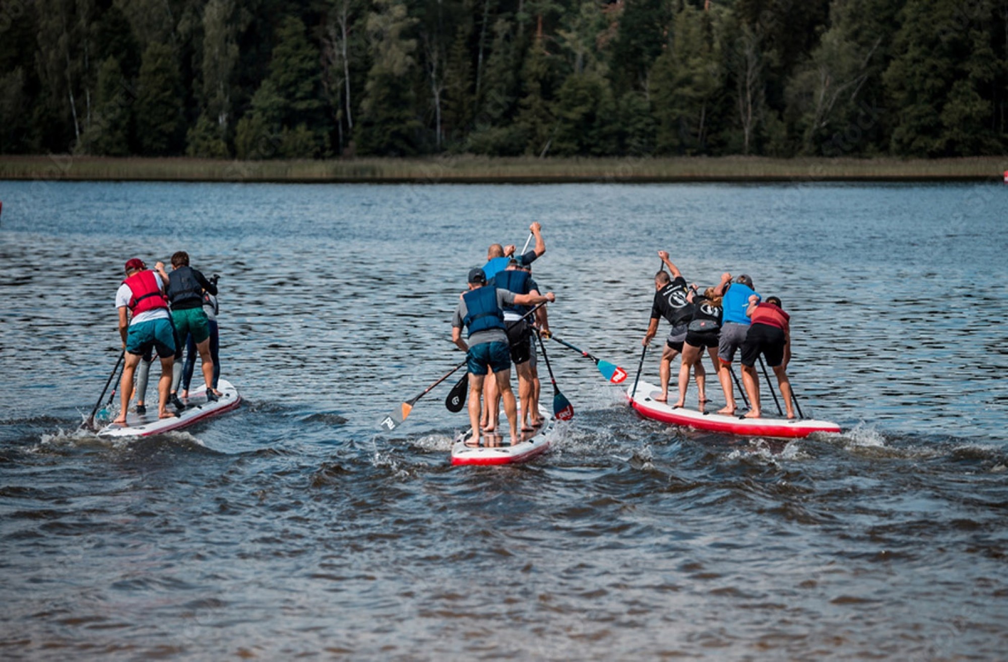 Kai norisi daugiau laisvės, daugiau judesio ir dar daugiau juoko, dvi lentos yra tobulas sprendimas! Šis SUP turas didžiosiomis irklentėmis leidžia komandai pasiskirstyti į dvi „įgulas“: vieni ima lyderystę, kiti kuria ritmą, o draugiška konkurencija gimsta savaime. Plaukiant dviem didžiosiomis SUP irklentėmis patirtis tampa dar dinamiškesnė – lengviau rasti savo tempą, patogiau manevruoti, o komandinė nuotaika išlieka tokia pati stipri, tik dar labiau „užsikuria“. Net jei esate pradedantieji, plaukimas irklente čia greitai tampa įkandamas: svarbiausia susikalbėti, pagauti bendrą bangą ir leisti nuotykiui vykti.