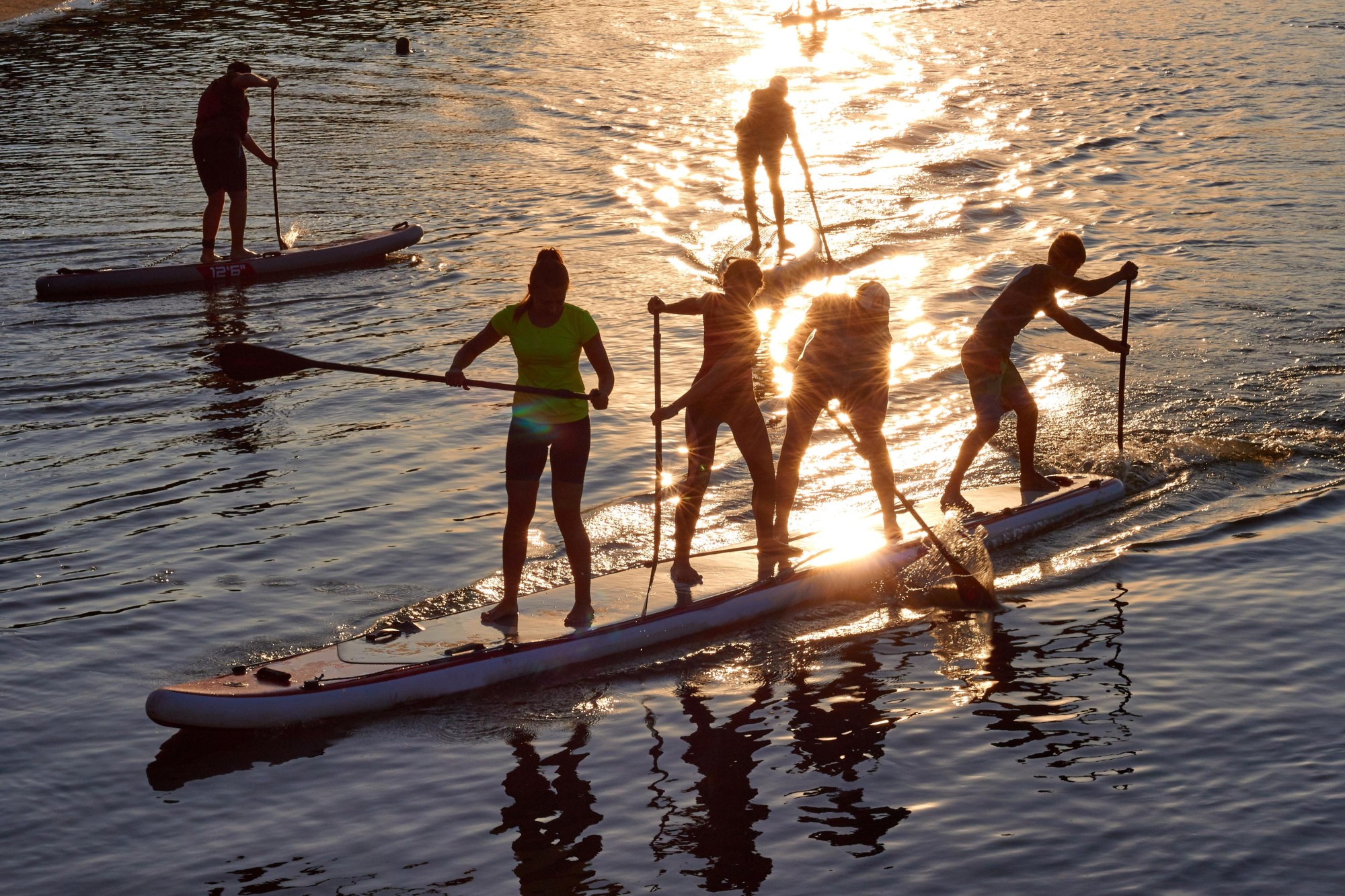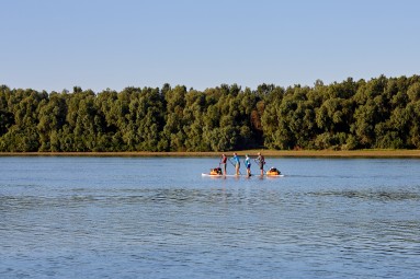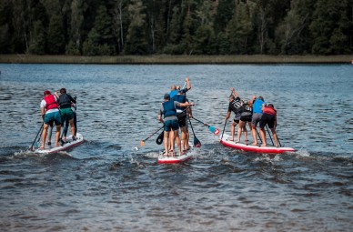 • plaukimas viena didžiąja SUP irklente (iki 180 kg) grupei: 2 suaugę + 2 vaikai; 2 suaugę + vaikas + šuo; 2–3 suaugę;