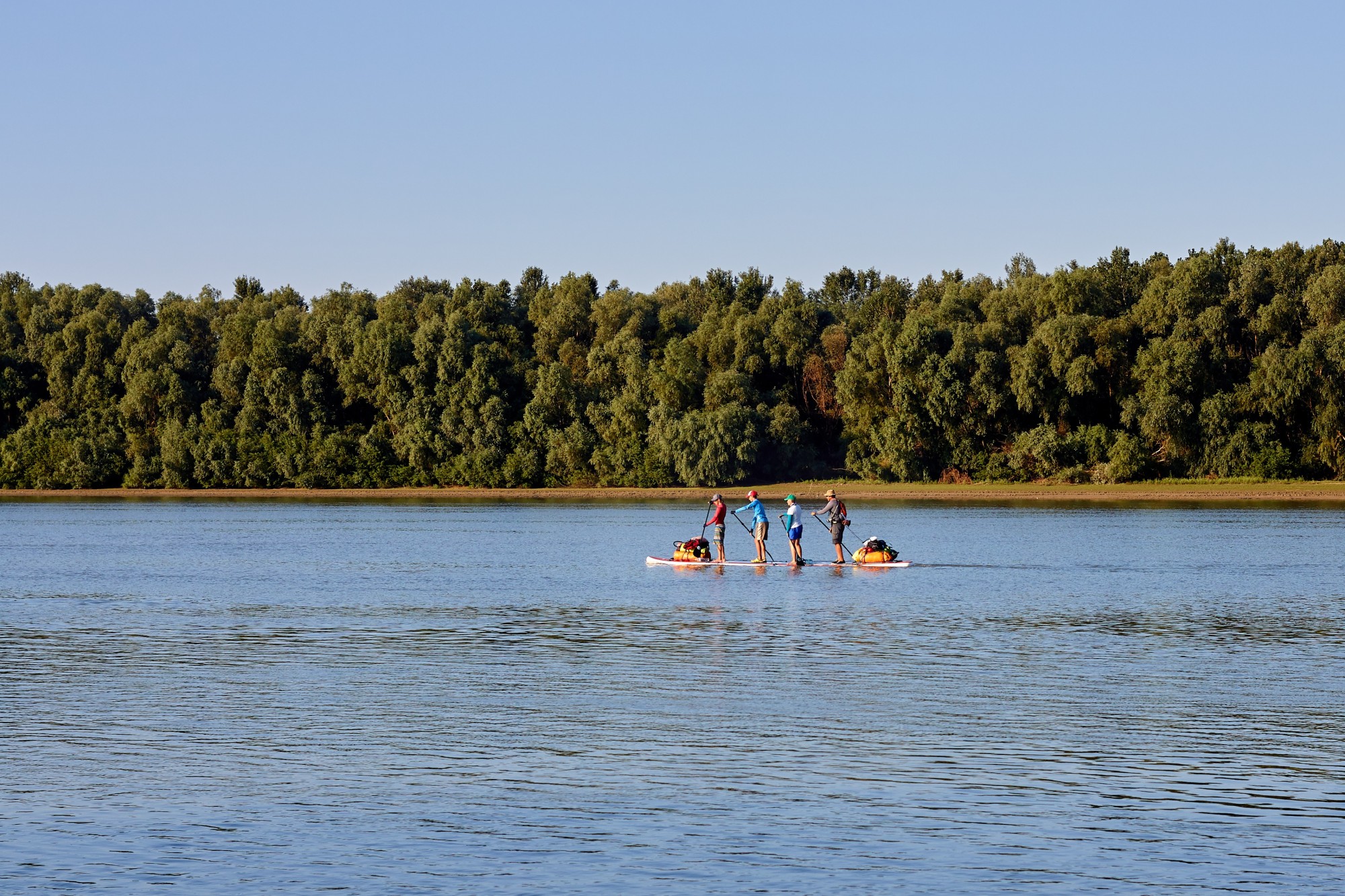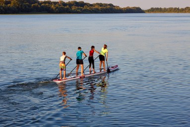 Jei norisi aktyvaus laiko kartu, kuris suvienija greičiau nei bet koks stalo žaidimas, rinkitės SUP turą didžiąja irklente! Čia svarbiausia ne greitis, o bendras ritmas: vienas irklas po kito, vienas juokas po kito, ir staiga jūs jau esate viena komanda. Didžioji SUP irklentė talpina komandą iki 180 kg, todėl šis plaukimas irklente puikiai tinka šeimai ar draugams – net jei ant SUP stojate pirmą kartą. Galimi variantai ant vienos irklentės: 2 suaugę + 2 vaikai, 2 suaugę + vaikas + šuo, arba 2–3 suaugę.